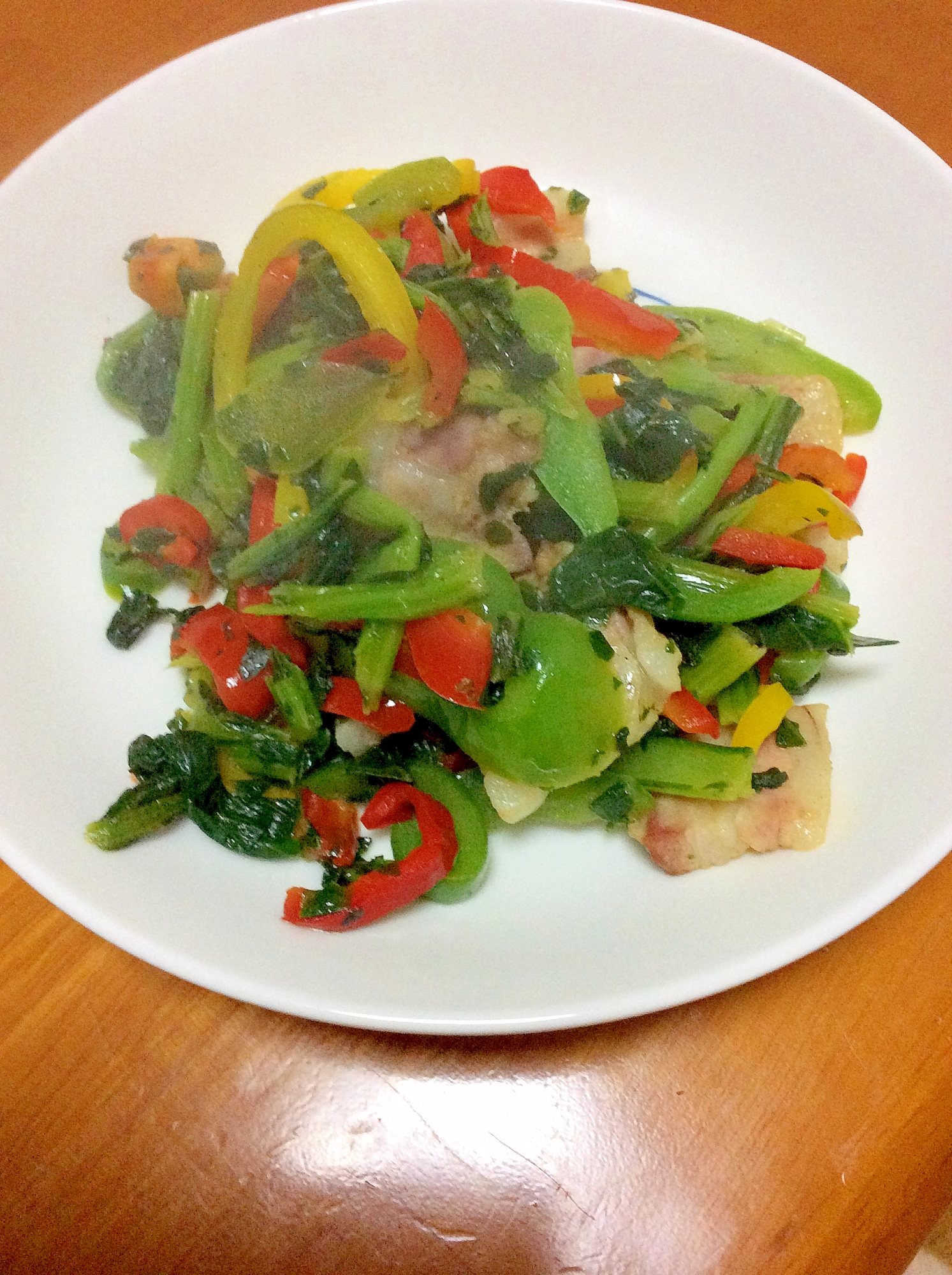 冷凍パプリカと冷凍小松菜のスモークベーコン炒め レシピ 作り方 By Madone6 楽天レシピ