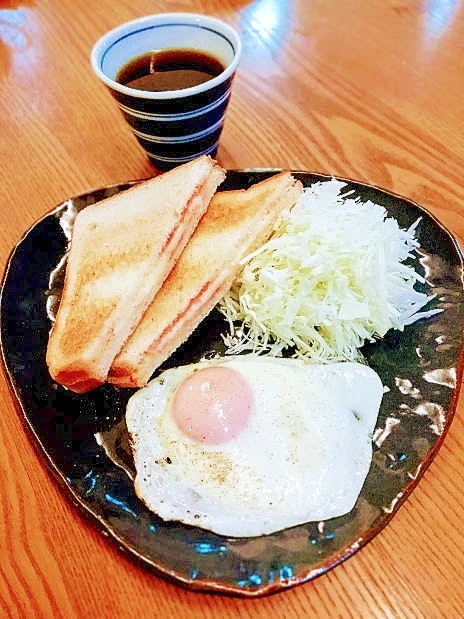 ツナキャベツのホットサンドとカフェオレで朝ごはん むぎこ Snapdish スナップディッシュ Id Jbsf0a